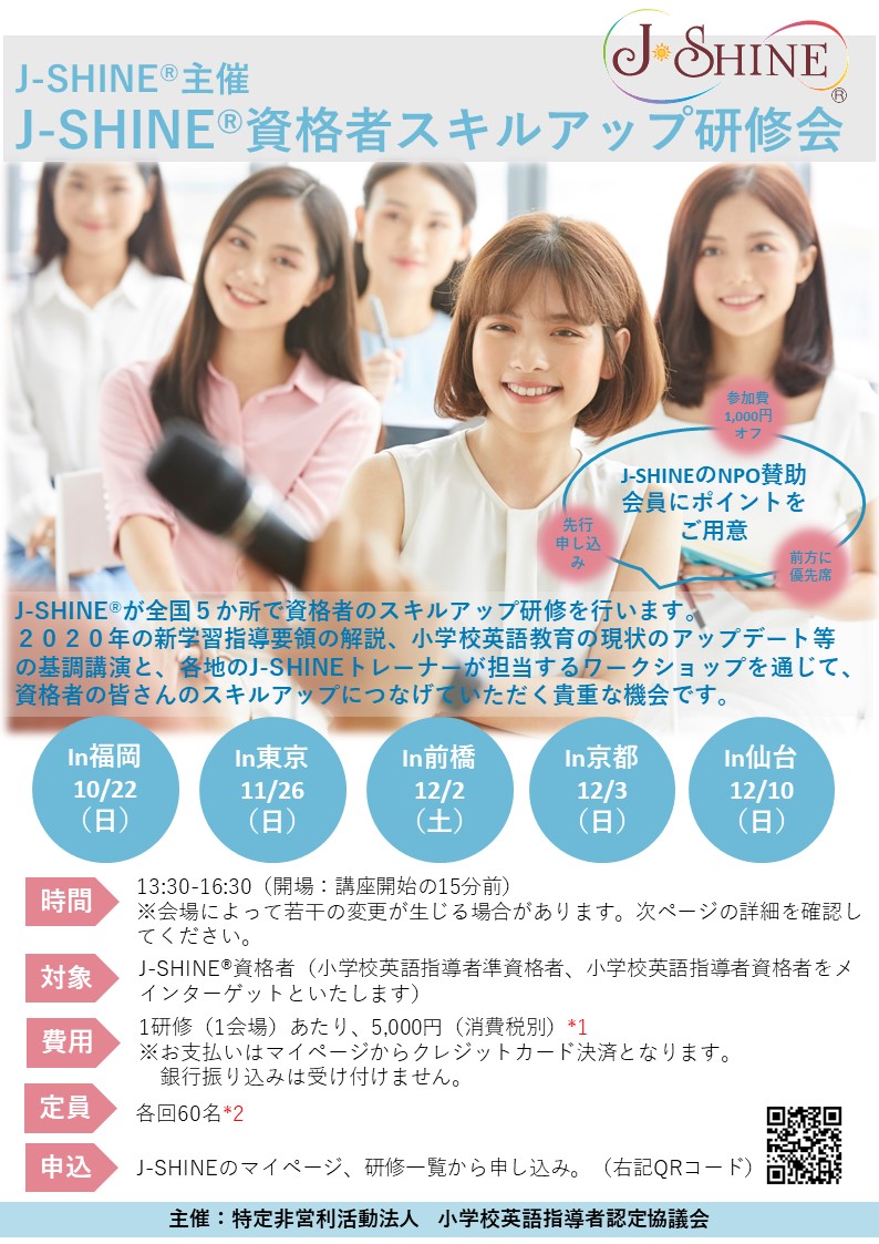 J-SHINE®が全国5か所で資格者対象のスキルアップ研修会を実施します。