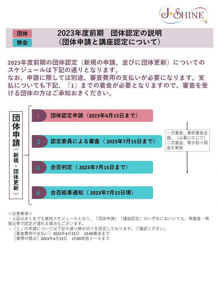団体認定・団体更新の申請スケジュール